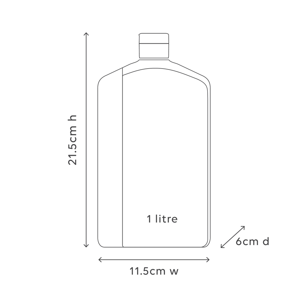 Our 1 L bottles are made from 100% Post-Consumer Recycled (PCR) HDPE plastic and are fully kerbside recyclable. The bottle label is made from PP with 30% post-industrial waste and can be left on during recycling. The cap is made from PP with a PE liner and is also recyclable when left attached.