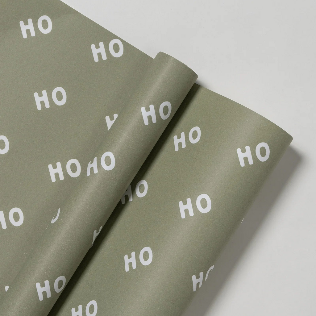 New for Christmas 2025, Ho Ho Ho wrapping paper in festive pine green.