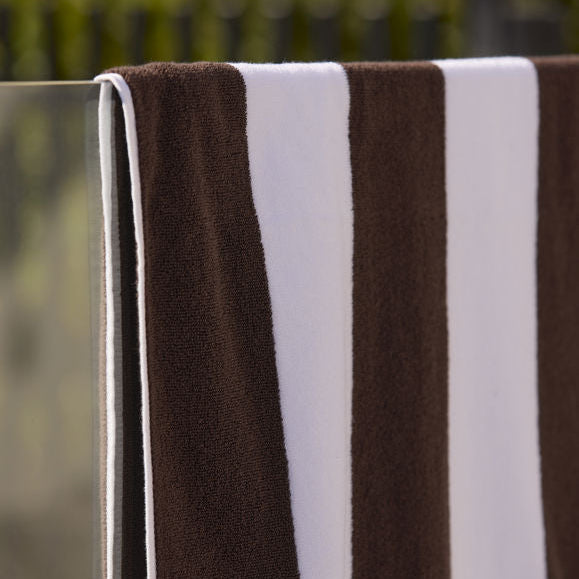The generously sized Stripe Beach Towel is a summer essential for days spent lazing by the water’s edge. The design features a timeless cocoa/white stripe detail.