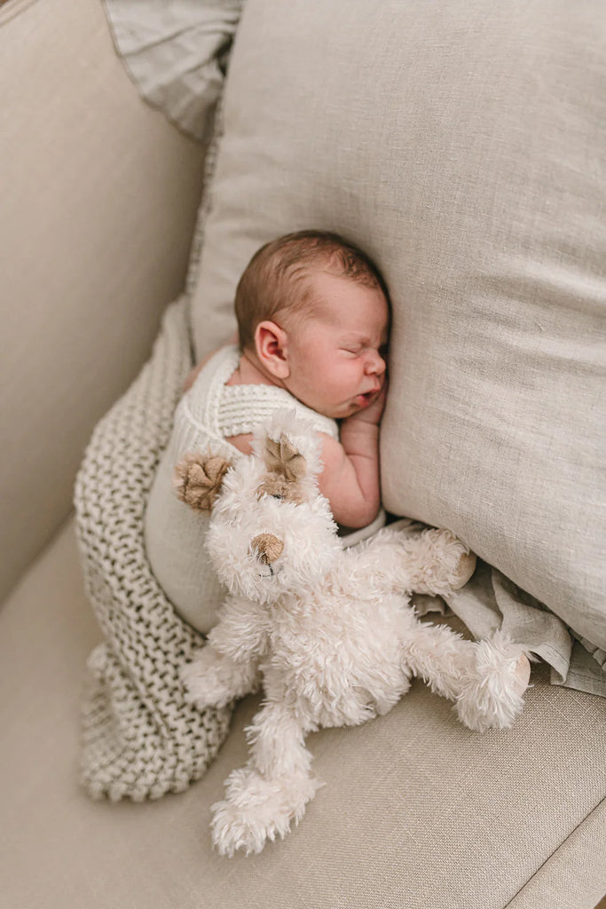 Buddy the Pup, small, sweet & bursting with energy, loves to be around people. He isn't shy like his dad, Buddy dog—in fact, he is quite the extrovert. He inherited his dad's piercing intellect & delights in performing tricks for anyone who will indulge him. Buddy the Pup can spin, shake hands, roll over, beg, & bark on cue (just be sure to give him a tasty Schmacko or liver treat afterwards). His dad wants him to study Law when he grows up but Buddy Pup's secret ambition is to join the circus & become an acrobat.
