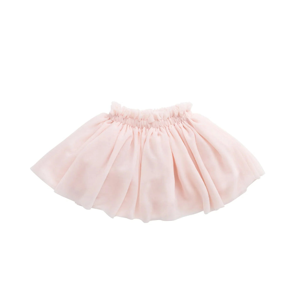 The Lilah Skirt in Soft Misty Rose is a dreamy tulle piece designed to bring a touch of elegance and playfulness to your little one’s wardrobe. With its soft pink hue and gentle volume, this skirt is perfect for twirling through special occasions or adding a whimsical flair to everyday outfits.