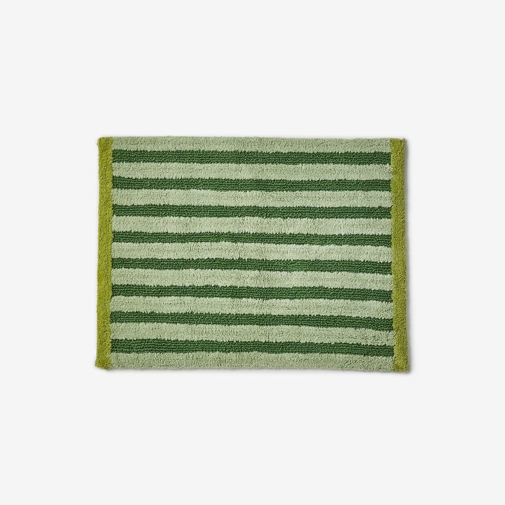A luxury weight cotton bath mat with bold green stripes. Soft underfoot, grounding, and perfect for everyday use.