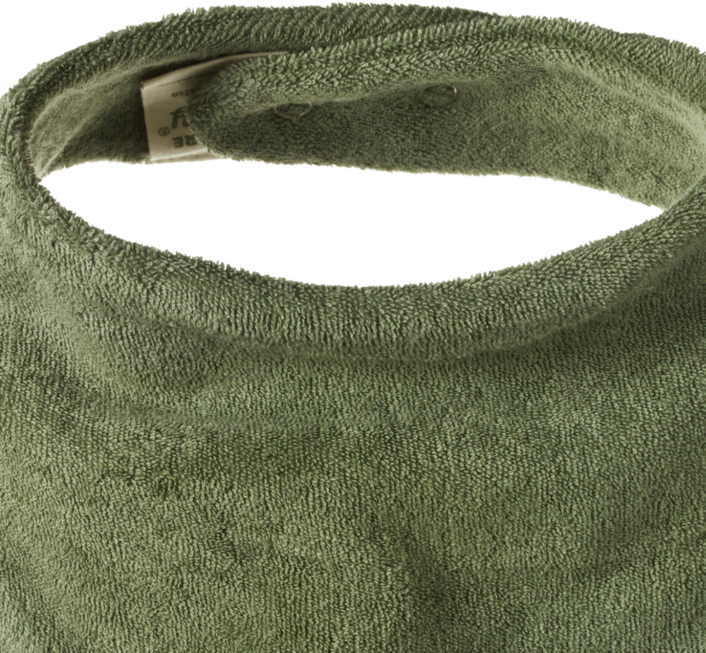 Designed to be worn all day - not just for meal times. Perfect for dribbly or teething babies, it has ample covering of baby's front with easy snap fasteners at the back neck for easy attachment. Made from certified organic soft stretchable terry cotton towelling. To minimise shrinkage, this fabric has been pre-washed.