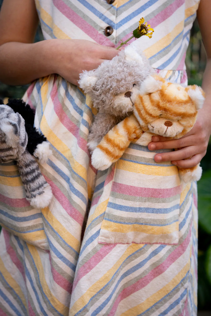Ginger is a fluffy orange kitten with a big love for marmalade. If someone leaves a jar open, uh-oh! She’ll tiptoe over & sneak a tiny lick with her pink tongue. Shhh… don’t tell her humans! Her favourite spot? A sunny patch on the carpet, where she curls up like a little cinnamon roll & dreams the day away. Like her Mum, Ginger the cat, she does not like mornings. Breakfast before noon? Silly humans… she’ll pass!