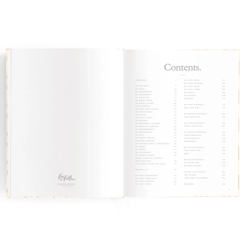 A beautiful keepsake for the whole family to enjoy in a blank cream linen box with small Fox & Fallow logo on the base. Includes: important milestones and firsts, family profiles, family tree and travel map, playgroup and daycare through to kindy and school years, time capsule, nicknames and celebrations, pets, friends, birthdays and more. 190 pages.