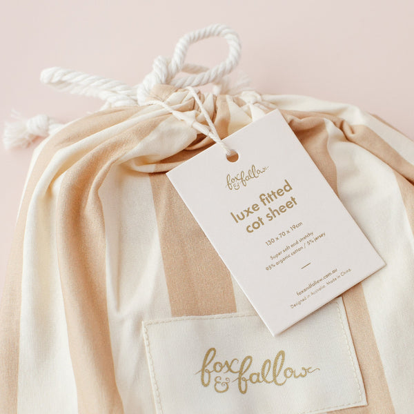 Coffee Stripe Organic Fitted Cot Sheet