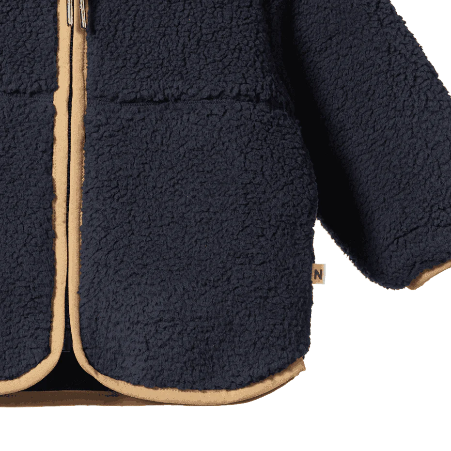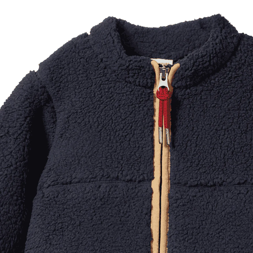 The Ranger Jacket will become your go-to adventure staple. Made from a snuggly recycled polyester sherpa and fully lined with 100% organic cotton, this piece is both practical and cosy. The higher neck and full zip front make the Ranger Jacket perfect for camping trips or to snuggle up in after coastal adventures.